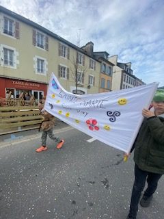 Sous un ciel parsemé d’étoiles imaginaires, le Carnaval de la Lune Étoilée de Landerneau a une nouvelle fois illuminé les rues de la ville, rassemblant petits et grands dans une atmosphère festive et chaleureuse. Parmi les participants, notre école s’est distinguée avec un thème aussi inspirant que joyeux : les super-héros et le bien-être. Dès les premiers instants, le cortège a offert un spectacle haut en couleurs. Capes virevoltantes, masques scintillants et costumes inventifs ont transformé les élèves en une véritable ligue de héros du quotidien. Au fil du défilé, l’ambiance festive s’est amplifiée au rythme des musiques entraînantes et des rires partagés. Les sourires illuminaient les visages, aussi bien chez les enfants que chez les spectateurs venus nombreux applaudir leur passage.