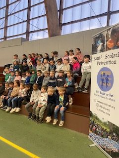 L’action solidaire s’est déroulée dans la salle de sport. Les TPS-PS-MS ont pu effectuer quelques foulées et ensuite un parcours. Pendant ce temps, les plus grands ont mené une course d’endurance avec des objectifs spécifiques par niveau : 15 min pour les CM2, 12 min pour les CM1, 10 min pour les CE2, 8 min pour les CE1, 6 min pour les CP et 5 min pour les GS.