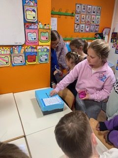 Arrivés à l’école, la salle de motricité s’était transformée en salle d’exposition ! L’association EBB nous a confiés des souvenirs de leurs actions au Togo. Cela a été l’occasion d’un échange entre les élèves et les bénévoles.