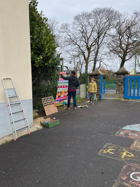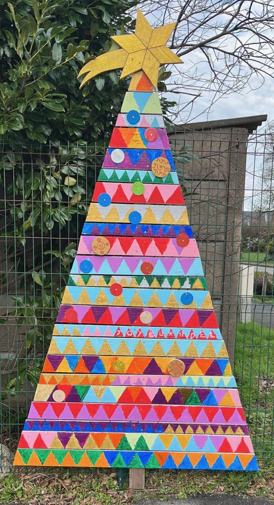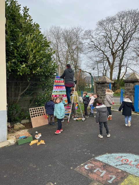 Tous les élèves se sont impliqués ces dernières semaines dans un projet artistique collectif sur le thème de Noël. Ce projet est à l’initiative de Mme Moalic qui a proposé des temps d’ateliers de peinture. (Merci Mme Moalic !)Voici la phase de montage de l’oeuvre (Merci Mr Le Hénaff !)