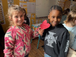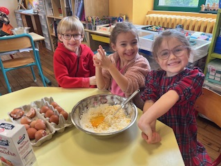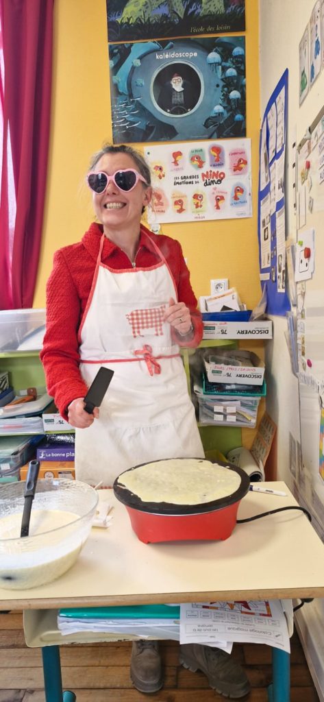 A quelques heures de la Saint-Valentin, tous habillés d’une touche de rose ou de rouge, nous avons fêté l’amitié à l’école ! Les GS ont préparé une pâte à crêpe pour que l’après-midi soit marqué par la fête de Pancake Day. A la manière des Britanniques, les élèves ont participé à la fameuse Pancake Race : une course de relais durant laquelle il faut faire sauter sa crêpe :))