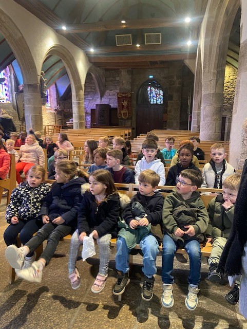Ce matin, nous sommes allés à l’église à l’approche de Pâques. Un moment qui a permis aux enfants de réfléchir ensemble à ce qui procure de la joie. Chacun leur tour, ils ont décoré une croix qui est devenue lumineuse et pleine de vie.